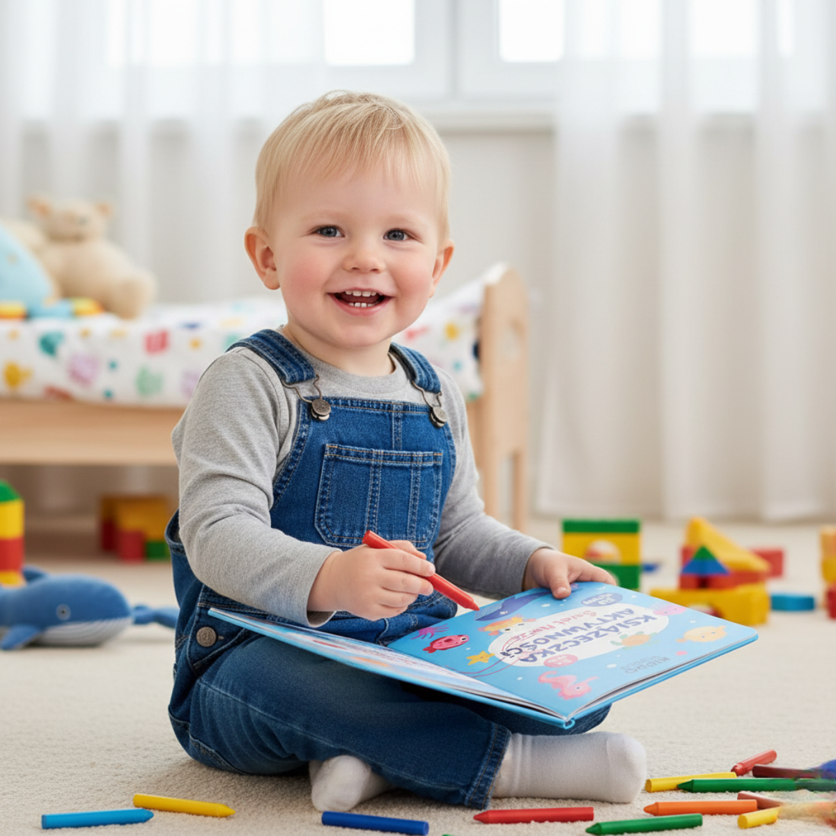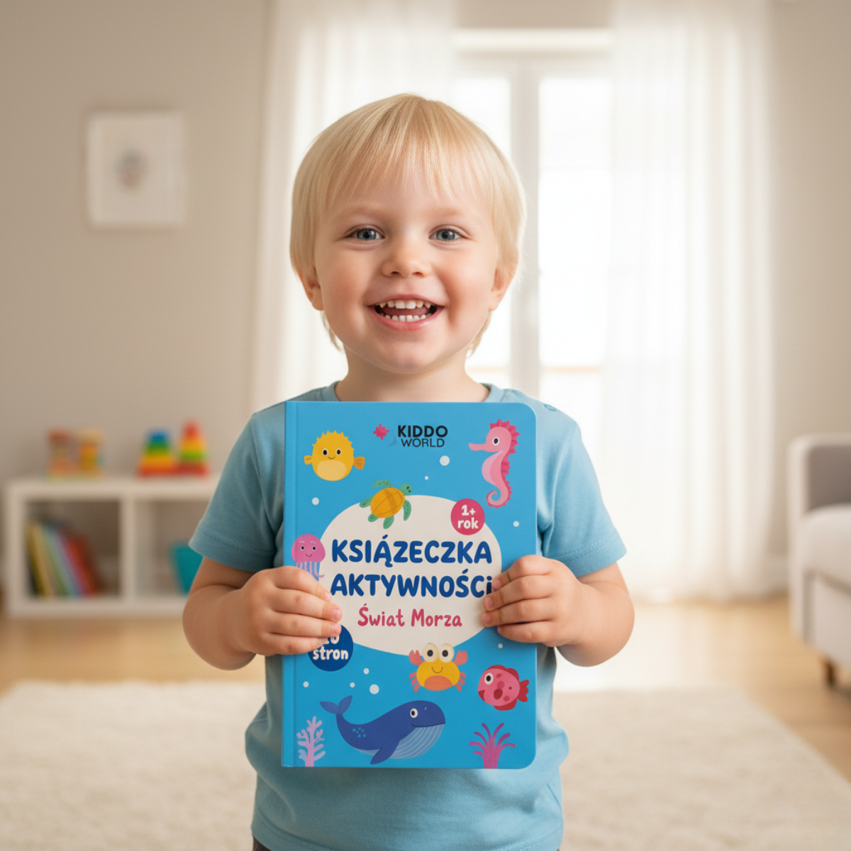 Niech Twoje dziecko stworzy własną, wyjątkową morską bajkę! 🐳🌈 Ta urocza kolorowanka z aktywnościami zawiera 20 stron pełnych morskich zwierzątek i zabawnych zadań, dzięki którym maluch będzie rozwijał kluczowe umiejętności przez zabawę. 🖍️ Dzieci będą kolorować rybki, delfiny, ośmiornice i innych morskich przyjaciół, a przy okazji rozwiązywać zadania takie jak: łączenie kropek, rozpoznawanie i dopasowywanie kształtów, labirynty i śledzenie linii.