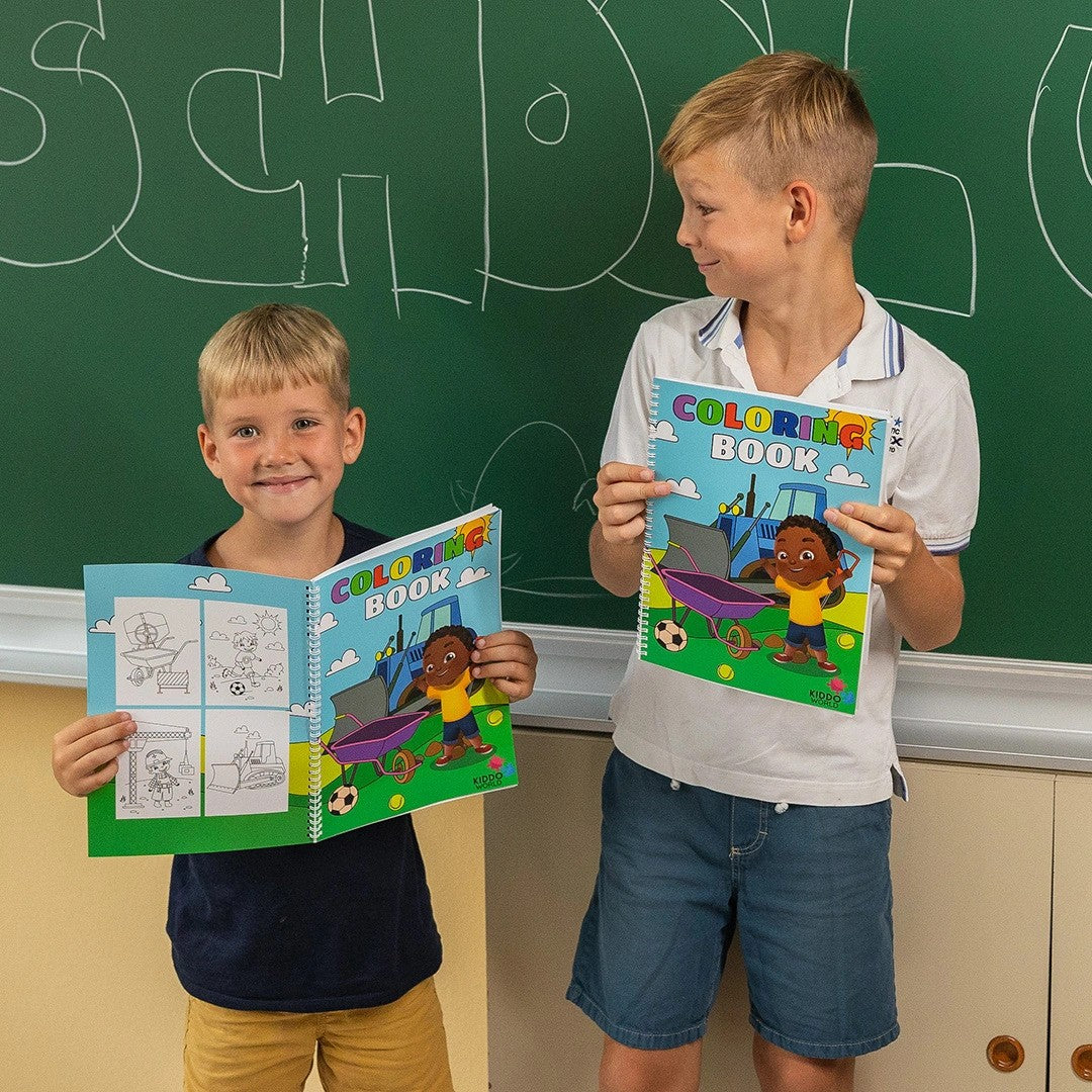 Przygotuj się na chłopięcą przygodę: od farmy po inżynierię i piłkę nożną - te kolorowanki dla dzieci są pełne ilustracji stworzonych dla chłopców na każdej ze stron. Niech rozpocznie się niekończąca się zabawa razem z gry kolorowanki dla dzieci - książeczka jest wielokrotnego użytku do zabawy przez wiele godzin.