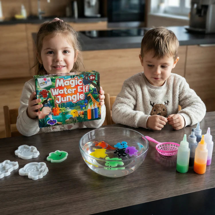 Zestaw Magical Water Elves pozwala dzieciom tworzyć wciąż od nowa. Każdy tematyczny świat wprowadza nowe kształty, kolory i kombinacje, dzięki czemu zabawa nigdy się nie nudzi 🎨✨. Dzieci mogą eksperymentować, mieszać kolory, dodawać brokat i obserwować, jak ich elfy ożywają w wodzie — wspierając wyobraźnię, ciekawość i radość tworzenia 💧🧚♂️.