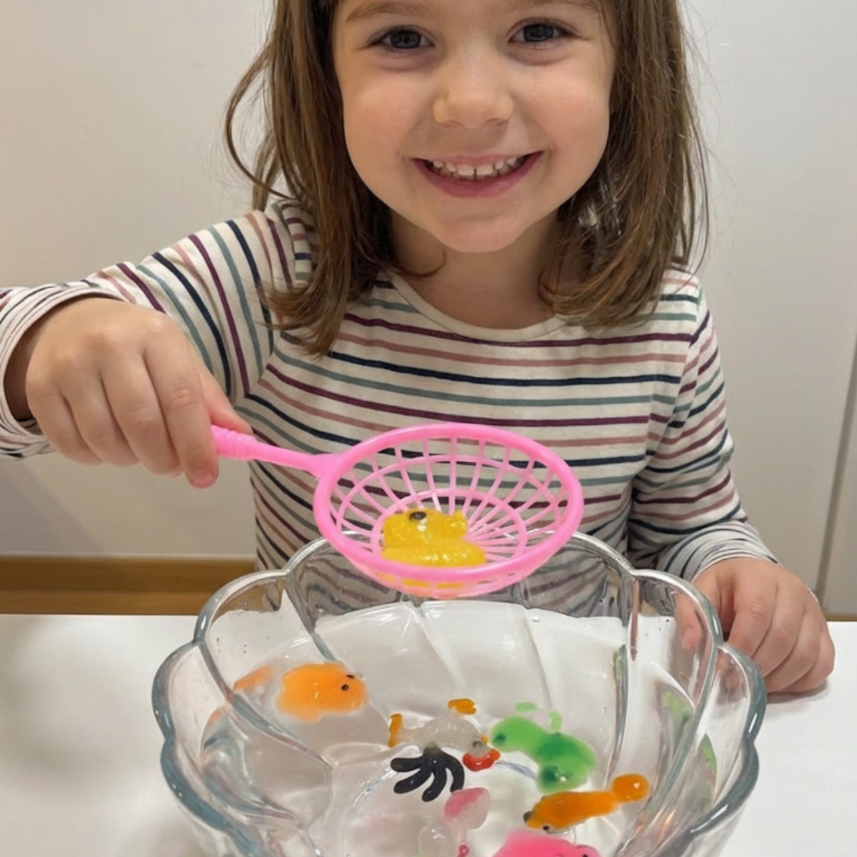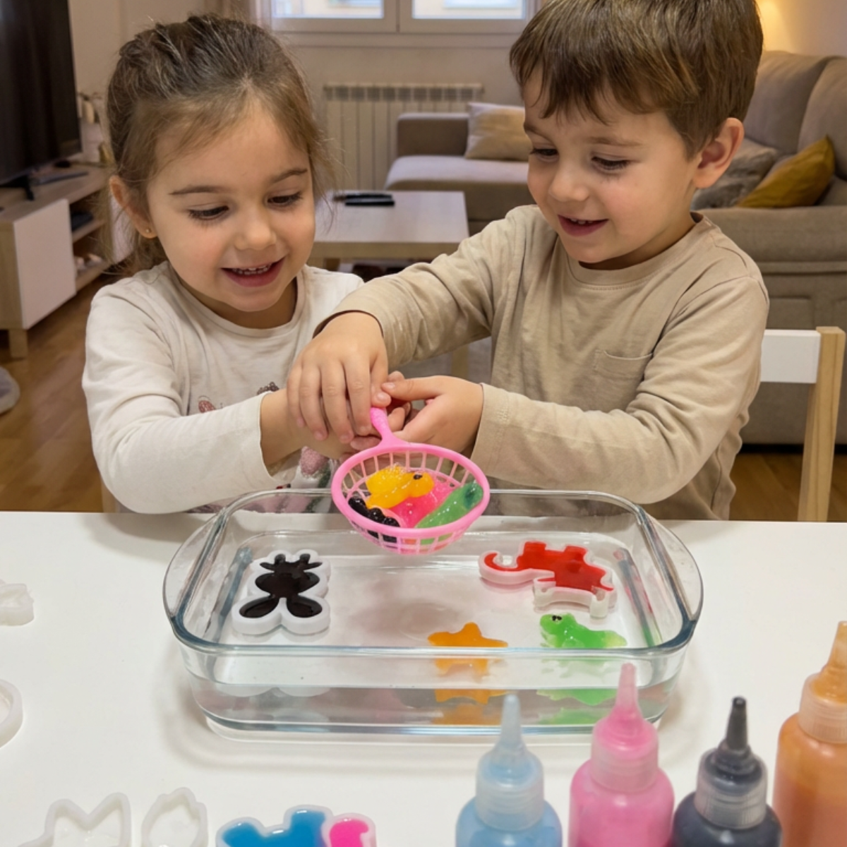 ✔️ Napełnij foremki kolorowymi żelami.
