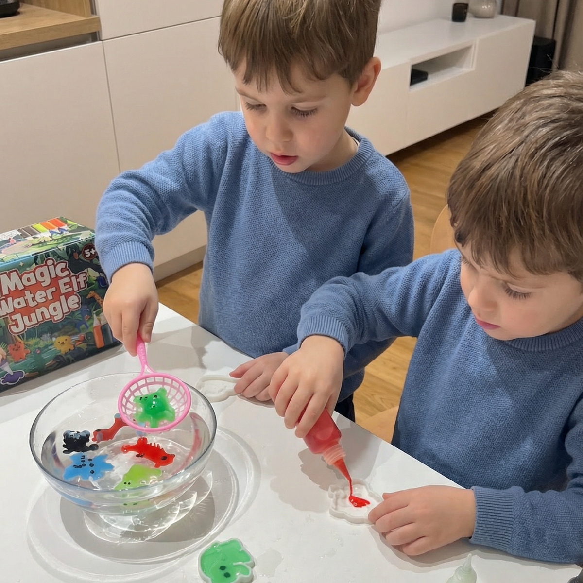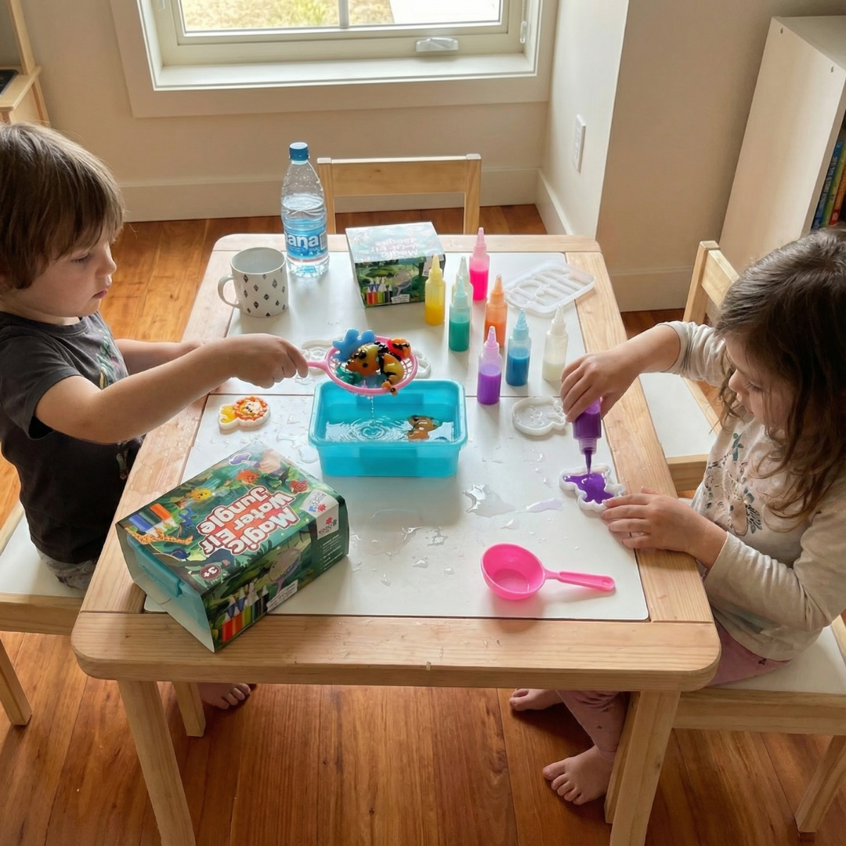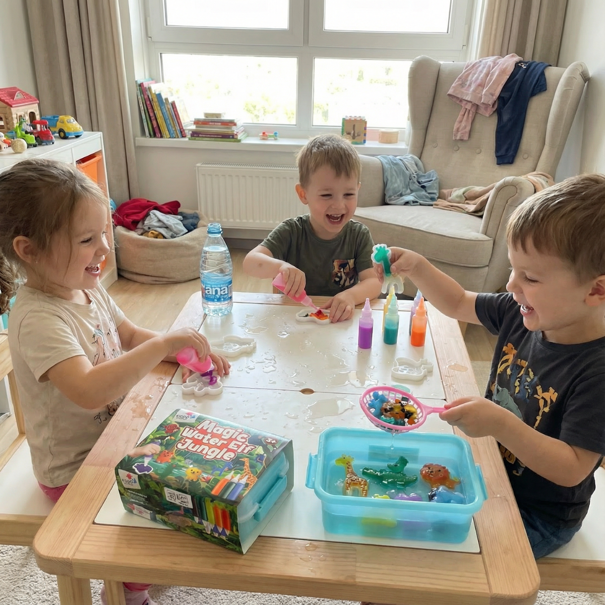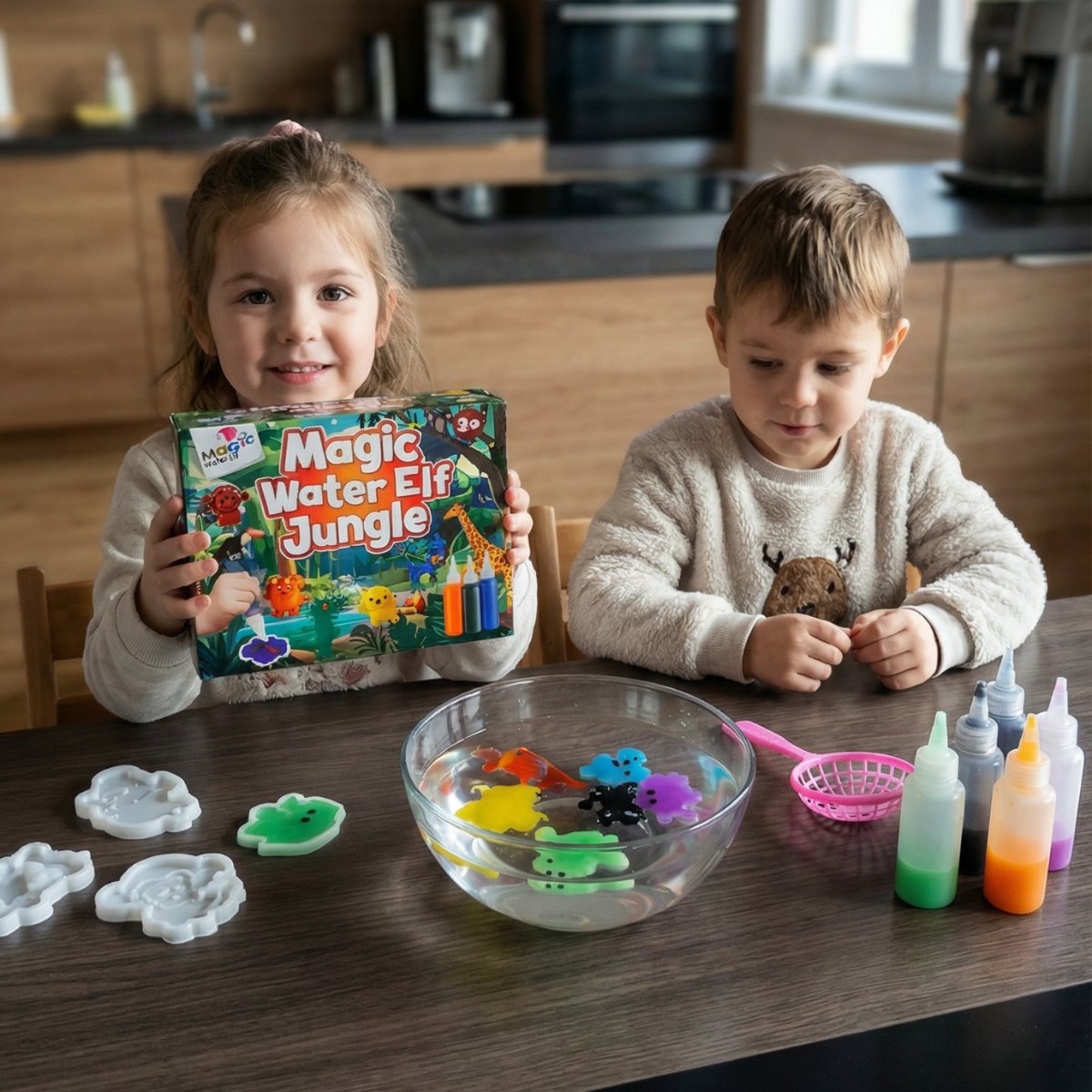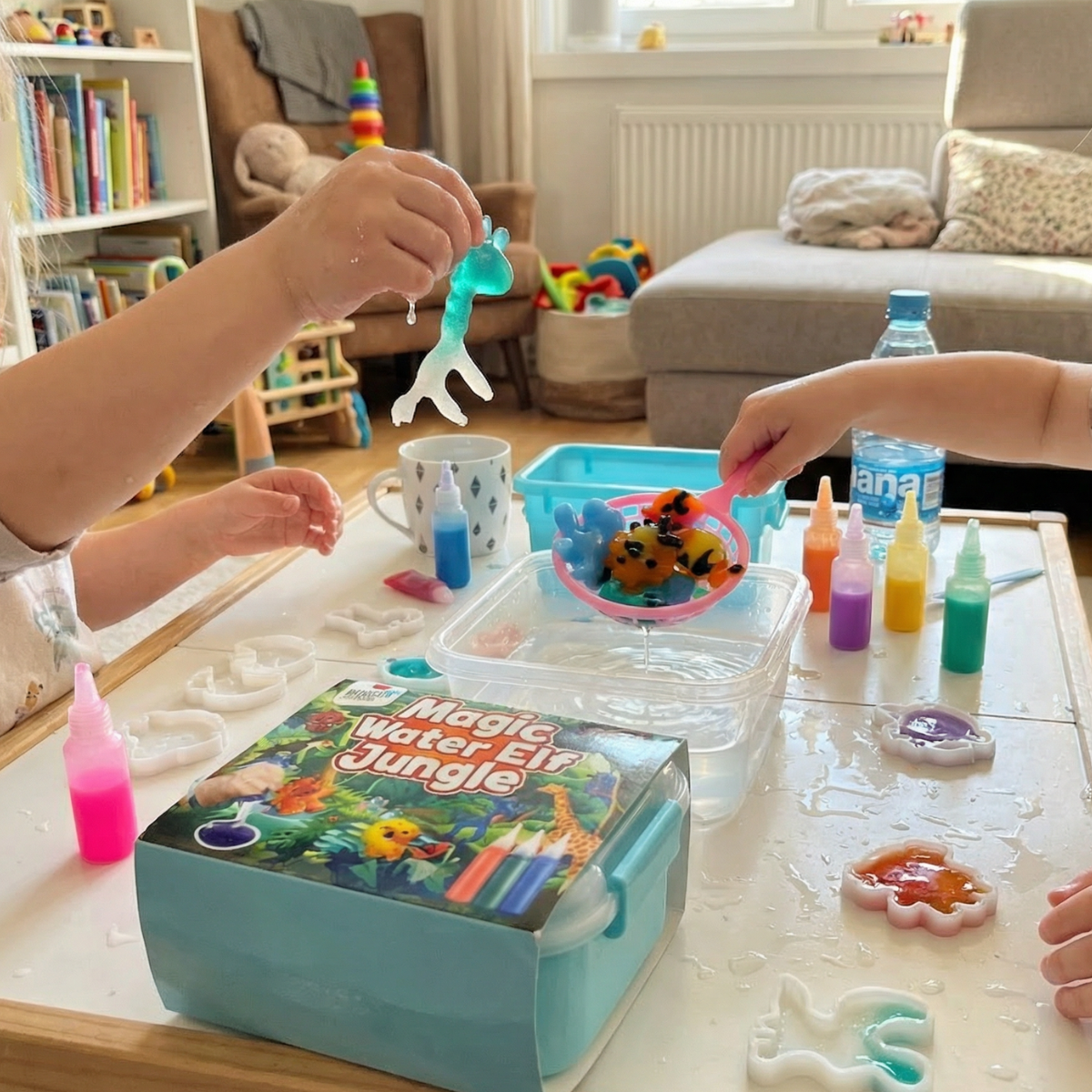 Gdy kolory zanurzą się w wodzie, magia ożywa. Dzięki modelkom tropikalnych zwierząt i kolorowym żelom powstają miękkie, kolorowe figurki, które po zanurzeniu w wodzie tworzą żywy, tropikalny świat i za każdym razem zaskakują innym wyglądem. Różne kolory umożliwiają różnorodne tworzenie, brokat dodaje wyjątkowego blasku, a zabawa rozwija kreatywność, motorykę małą oraz naukę kolorów.