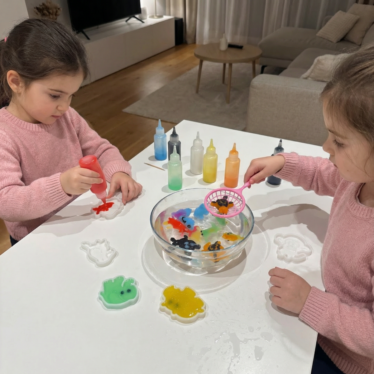✔️ Napełnij modele kolorowymi żelami.