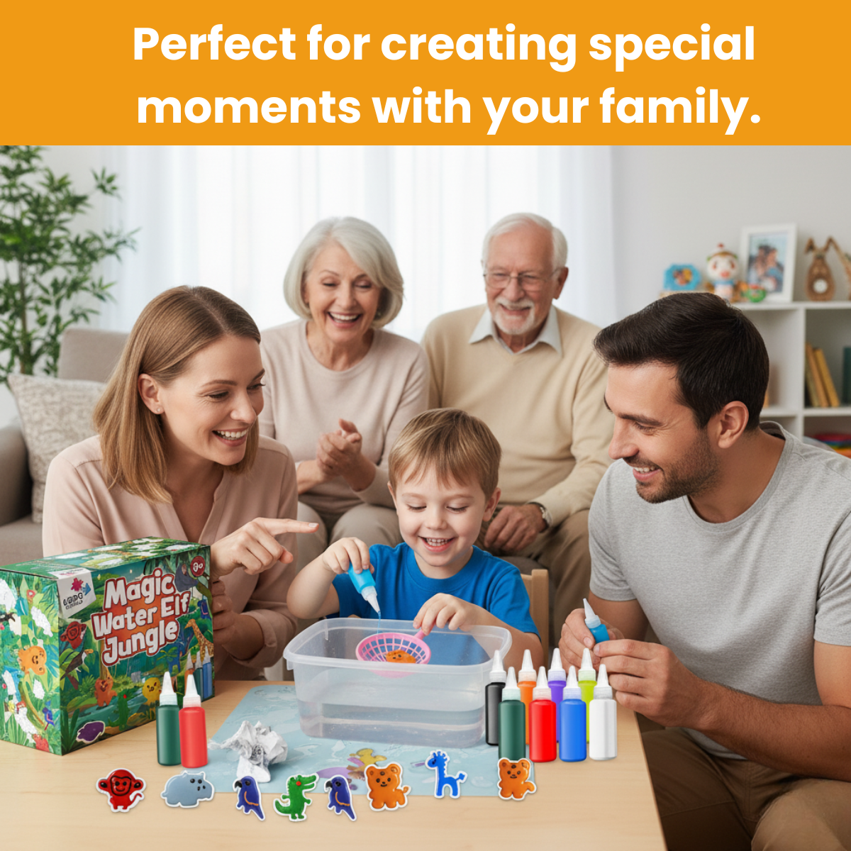 Niech Twoje dziecko stworzy swoją magiczną dżunglę wodnych skrzatów! 🌴🦜 Wejdźcie w dziki świat kreatywności z foremkami zwierząt dżungli i kolorowymi żelami, z których połowa jest brokatowa! 🌈 Dzieci będą tworzyć, odkrywać i uczyć się poprzez zabawę. Każdy skrzat ożywa przed oczami dziecka, a kolory i brokat sprawiają, że zabawa jest jeszcze bardziej magiczna! 🐒🦋