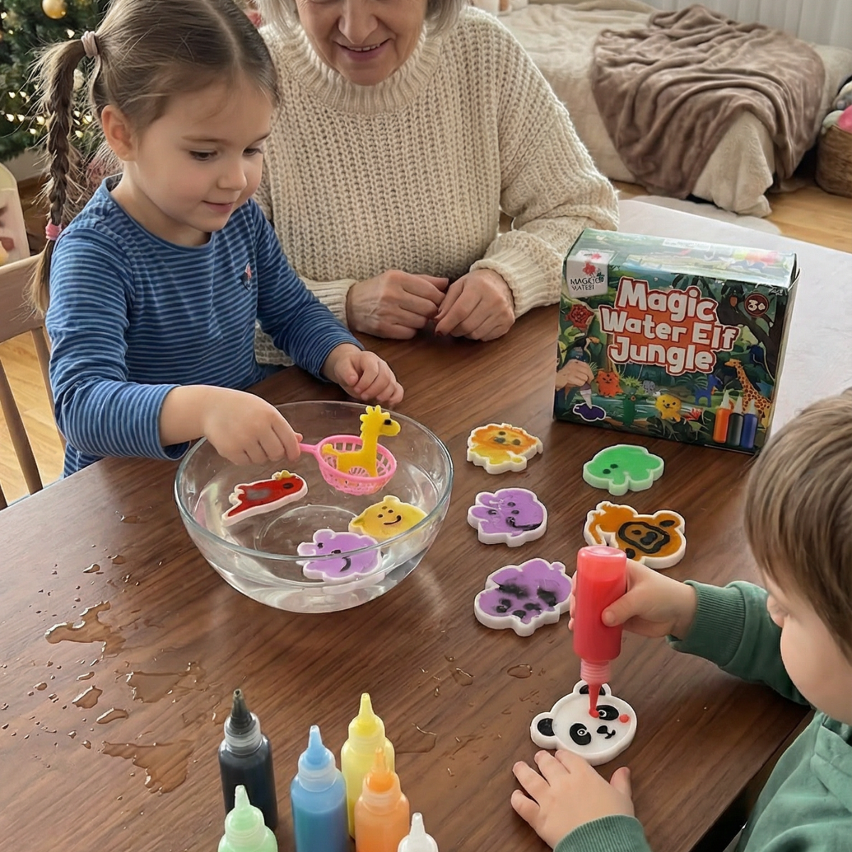✨ Magic Water Sprites z brokatem – 8 kolorów, kształty zwierząt, proszek „dymny”, pudełko do przechowywania i siateczka; bezpieczne, proste i zabawne w użyciu