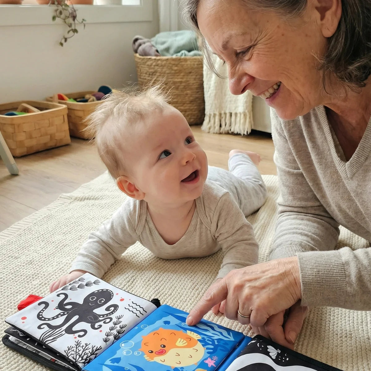 ✔ Wysokokontrastowe wzory stymulujące wzrok