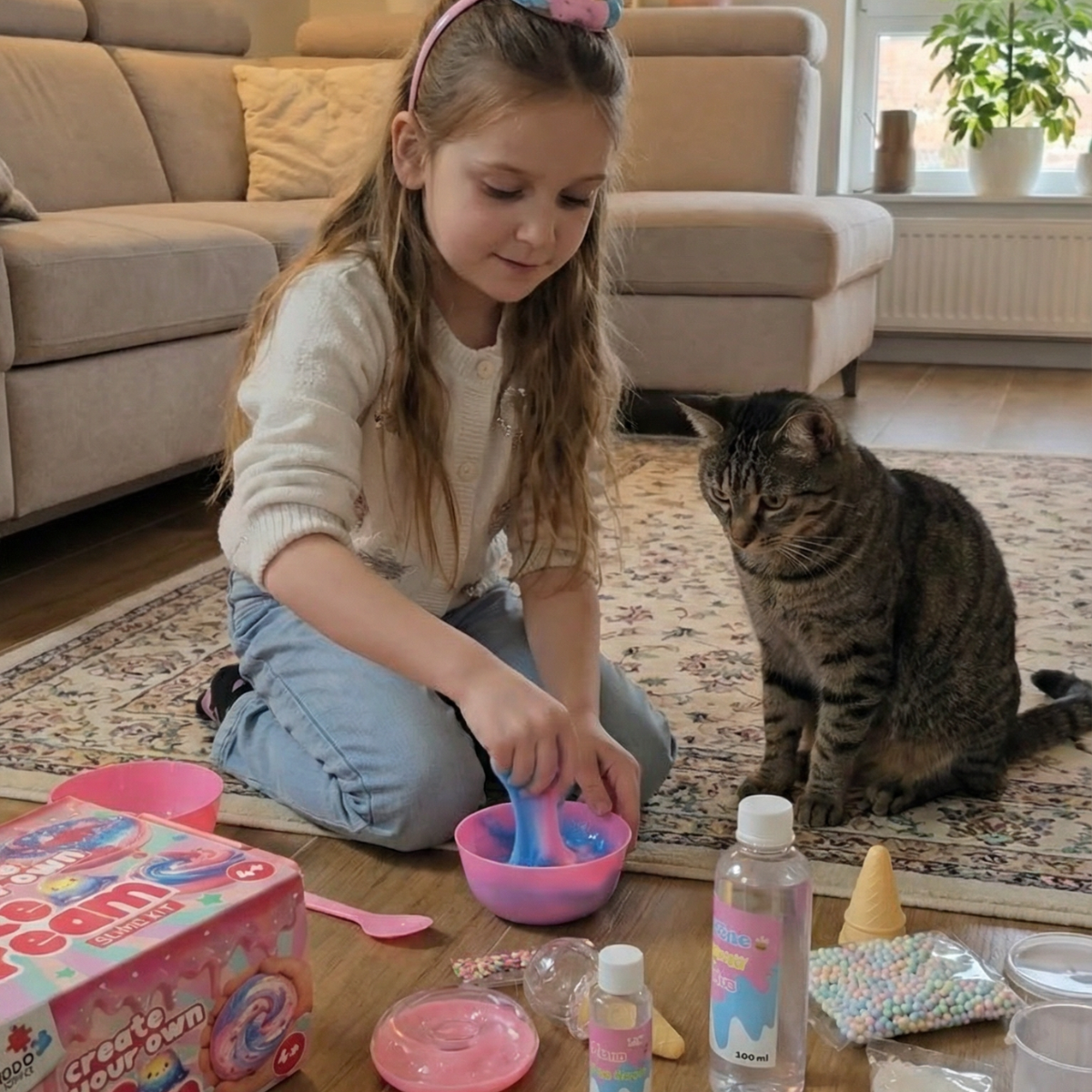 Połącz wyobraźnię i ciekawość dziecka w jednym zabawnym zestawie DIY. Slime Kit zachęca do odkrywania kolorów, faktur i reakcji, jednocześnie rozwijając podstawowe umiejętności STEM. Dzięki brokatom, pigmentom, miękkiej glince i dekoracjom każda porcja staje się małym eksperymentem. Zabawka rozwojowa wspierająca koncentrację, motorykę małą i kreatywność, oferująca bezpieczną, uspokajającą zabawę bez ekranów.
