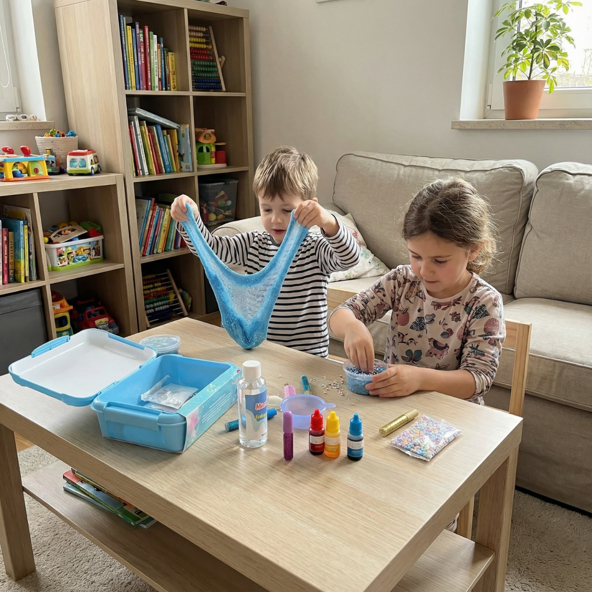 Połącz wyobraźnię i ciekawość dziecka w jednym zabawnym zestawie DIY. Slime Kit zachęca do odkrywania kolorów, faktur i reakcji, jednocześnie rozwijając podstawowe umiejętności STEM. Dzięki brokatom, pigmentom, miękkiej glince i dekoracjom każda porcja staje się małym eksperymentem. Zabawka rozwojowa wspierająca koncentrację, motorykę małą i kreatywność, oferująca bezpieczną, uspokajającą zabawę bez ekranów.