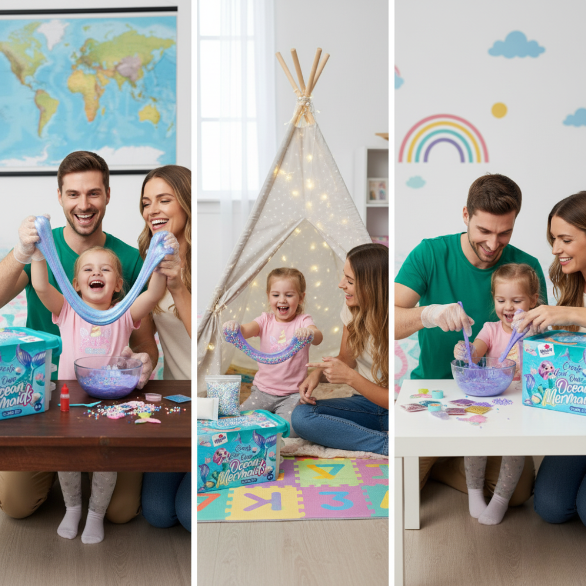 Wymieszaj brokat, piankowe kulki lub kolory i stwórz swój unikalny morski slime.